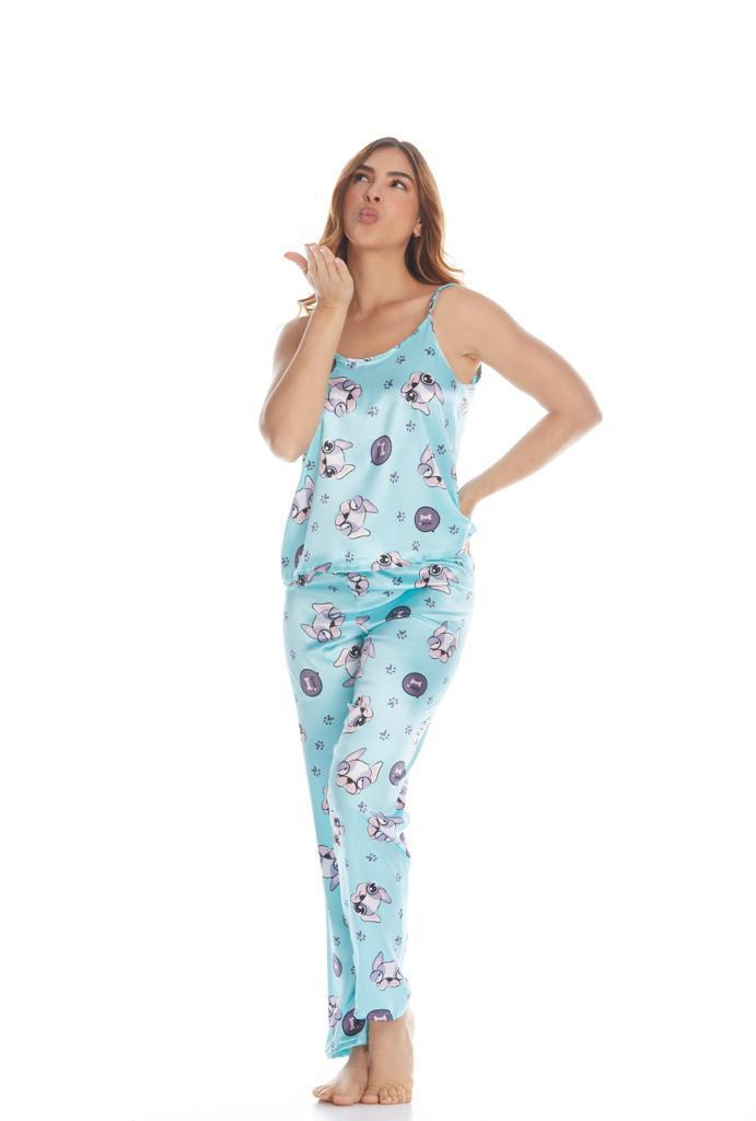 Conjunto Pantalón Blusa Satín perros